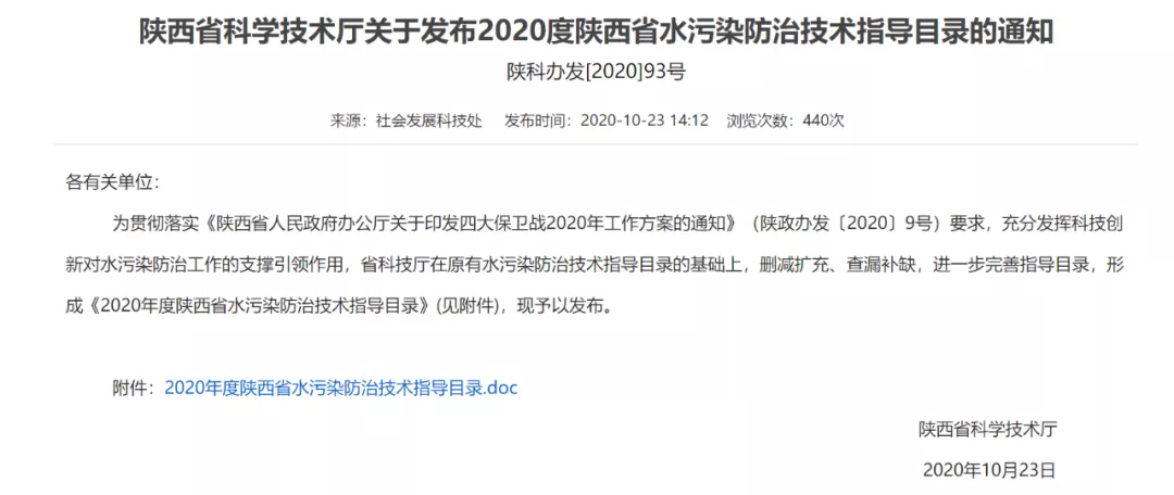 中科水治理技術入選2020年度陜西省水污染防治技術指導目錄