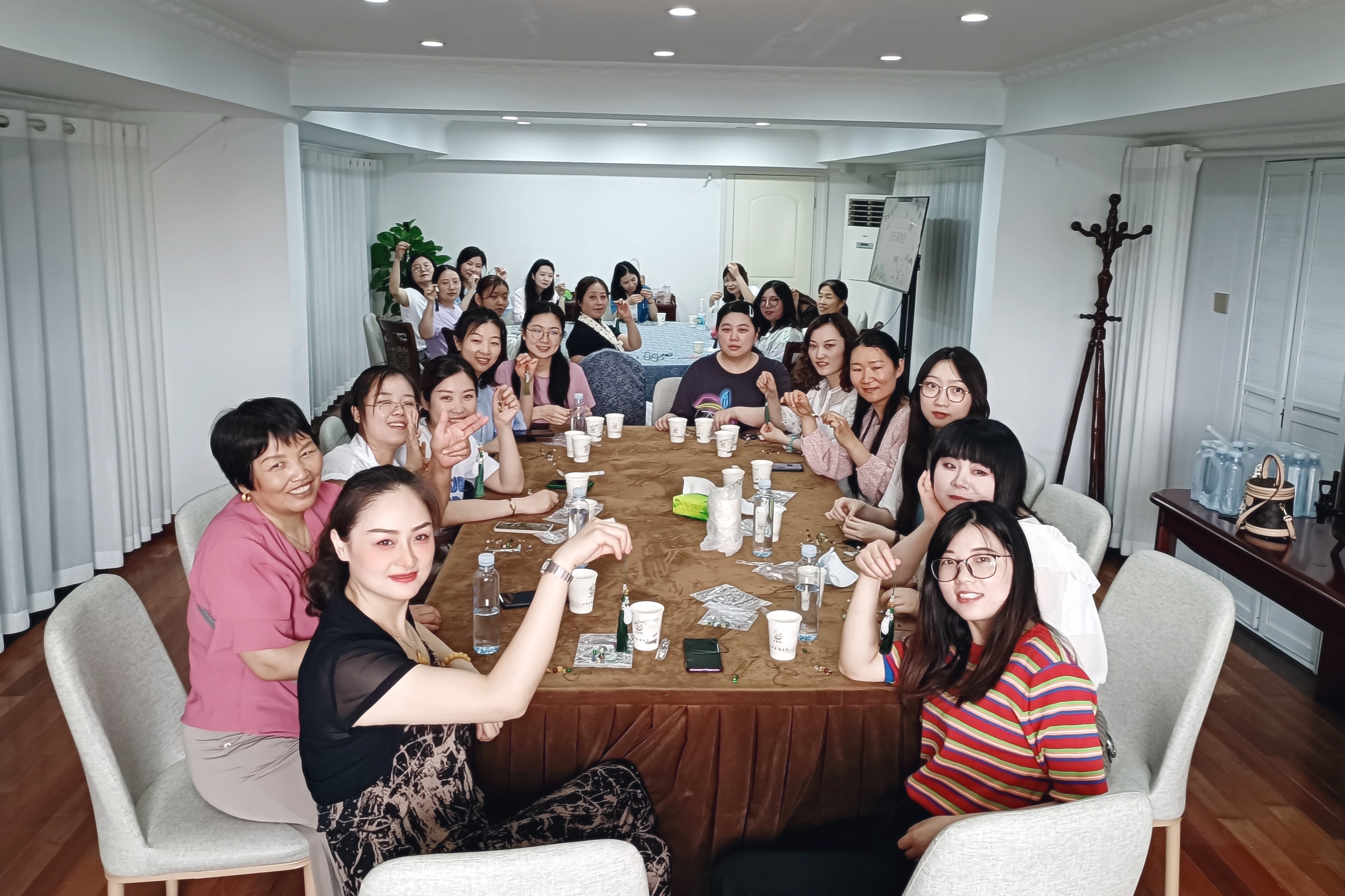 在隨后的動手制作環節中,女職員們充分發揮了自己的審美藝術,精心挑選色珠搭配,相互交流編織心得,一串串色彩斑斕、做工精致的掛件呈現在眼前。