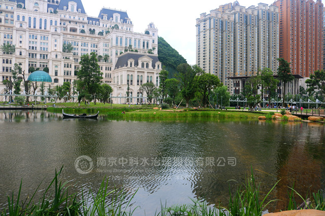 南京中科水治理股份有限公司于20131210日開始,對景觀湖進行清水型生態系統構建工程,實施的主要內容有:水體透明度提升、挺水植物、沉水植物群落構建,魚類、大型底棲動物群落構建,水質指標監測,及養護管理。2014217日,清水型生態系統構建工程較計劃提前1個月完工并通過驗收。至今,主要水質指標仍達到《國家地表水環境質量標準》GB3838-2002Ⅱ類水標準,超過合同規定的 Ⅳ類水要求,水質清澈見底,水生動植物多樣性提高,有效抑制了水體富營養化趨勢。