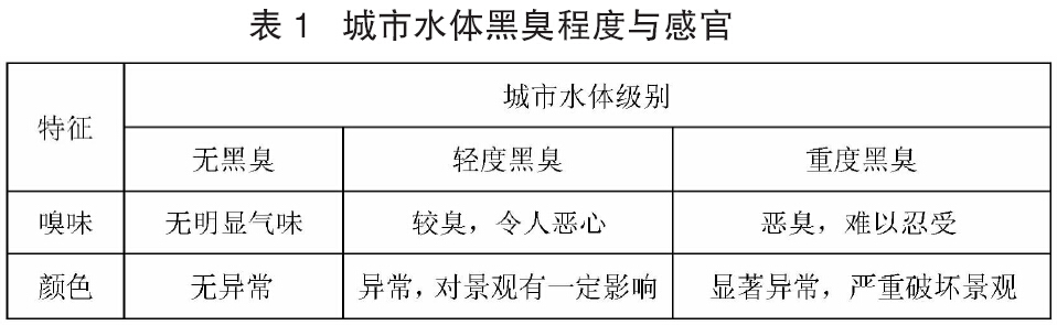 城市水體根據感官的不同分為無黑臭、輕度黑臭和重度黑臭三類。